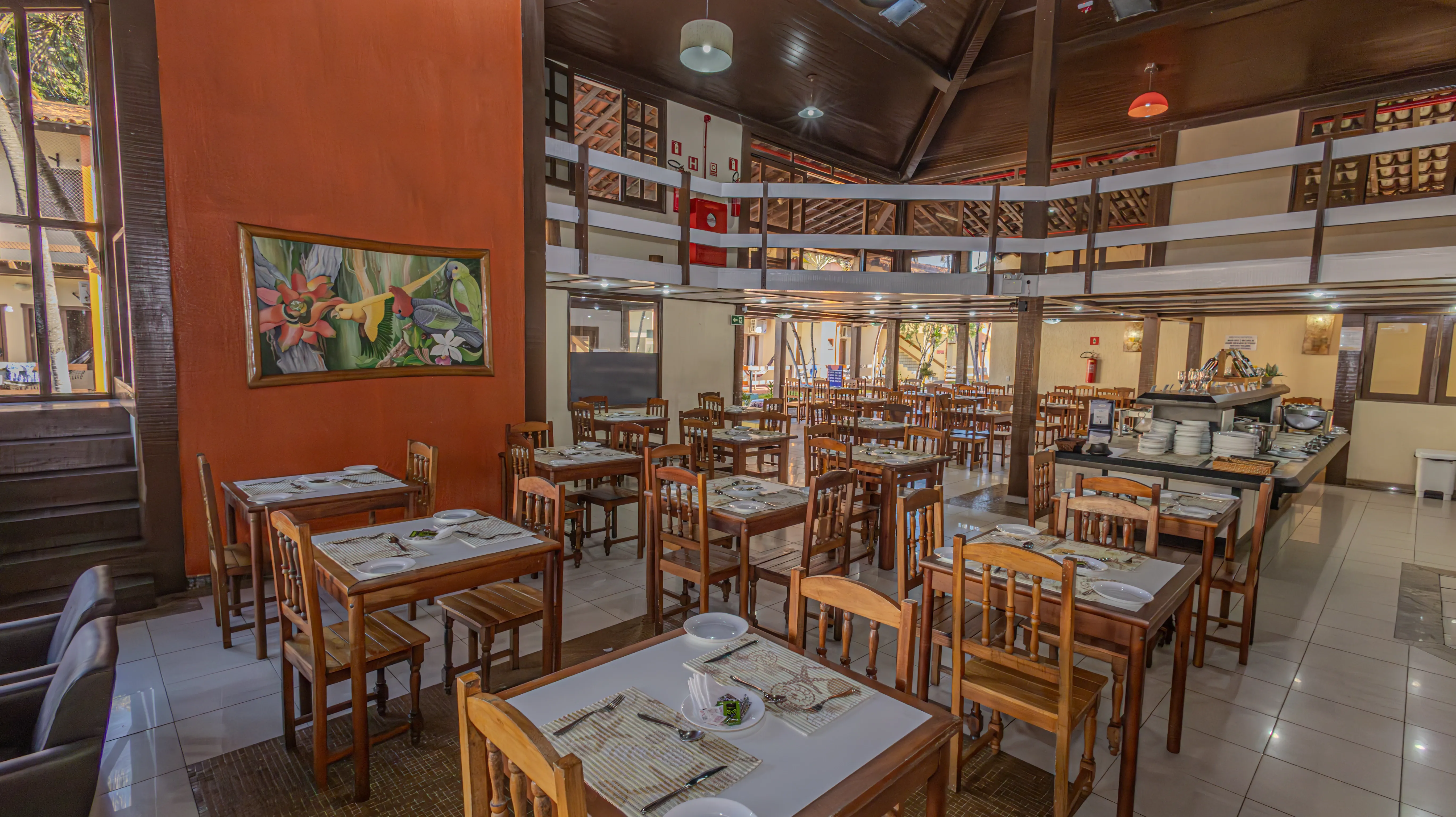 O restaurante oferece um ambiente acolhedor para as principais refeições. No almoço, funciona com serviço à la carte, com opções variadas de carnes, pratos principais, acompanhamentos, saladas e sobremesas e os preços variam conforme o prato escolhido. Já no jantar, o serviço é em formato buffet com preço fixo por pessoa, incluindo entrada, pratos quentes, guarnições, carnes e uma seleção de sobremesas.