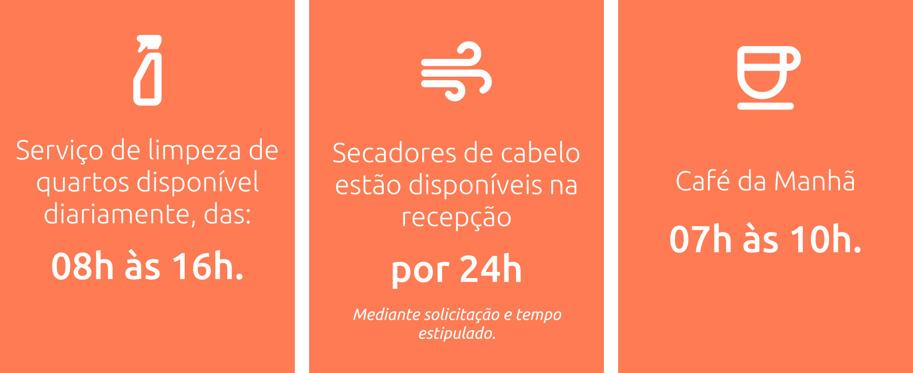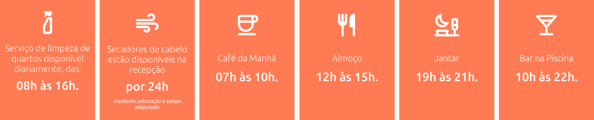 Preparamos cada detalhe para que sua estadia seja impecável. Nossas acomodações combinam a praticidade que você precisa com o acolhimento que você adora. Desfrute de ambientes sempre frescos com ar-condicionado Split, mantenha suas bebidas geladas no frigobar e aproveite a brisa na sua varanda privativa com rede. Para o seu conforto, oferecemos amenities de higiene pessoal, toalhas de banho e de rosto, toalha de piso e um cobertor por hóspede.